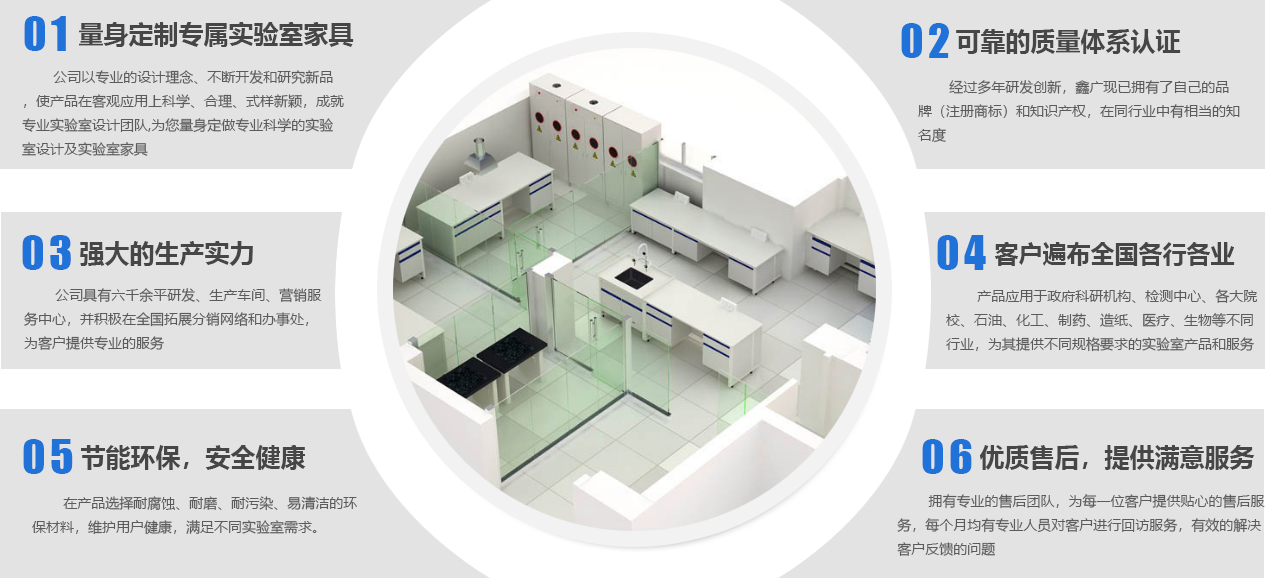 山東鑫廣實驗設備科技有限公司成立于2007年,是一家位于山東濰坊的實驗室家具工廠。作為實驗室整體解決方案服務商,我們提供從實驗室規(guī)劃、實驗室設計、實驗室裝修、實驗室工程、實驗室家具、實驗室設備、到實驗室服務等實驗室建造一站式服務,致力于專業(yè)研發(fā)、設計、生產實驗室家具等產品及相關配套設備,并提供實驗室建設全套解決方案的新型高科技企業(yè)。公司下設研發(fā)加工工廠、營銷服務中心,并積極在全國拓展分銷網(wǎng)絡和辦事處,為客戶提供更專業(yè)、優(yōu)良的產品和服務。